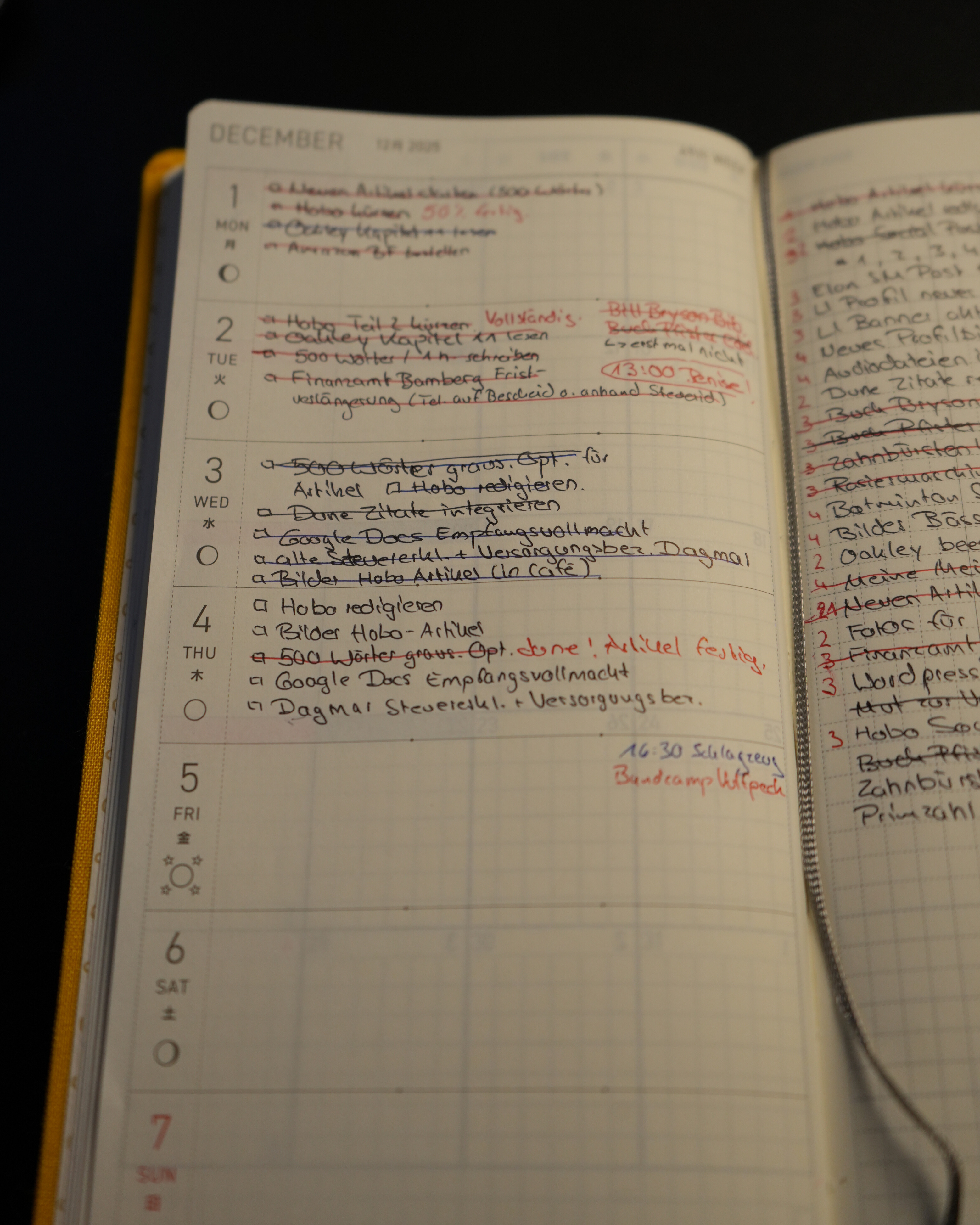 Das zweite System dient ausschließlich der vorausschauenden Organisation meiner Woche.